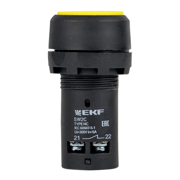 Кнопка управления возвратная желтая NO NC для щитов sw2c-11s-y