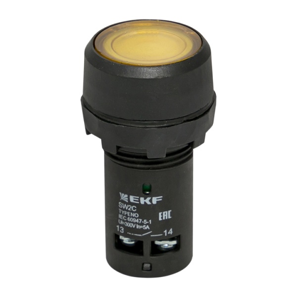 Кнопка управления возвратная желтая с индикацией NO NC 24 Вольта для щитов sw2c-md-y-24