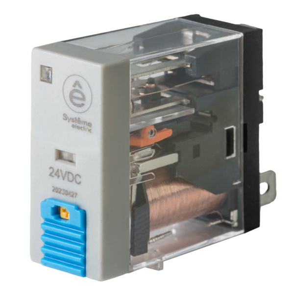 Промежуточное миниатюрное реле 2 перекидных контакта 24 Вольта 8А светодиодная индикация, тестовая кнопка Систем Электрик SXG SXG22BD