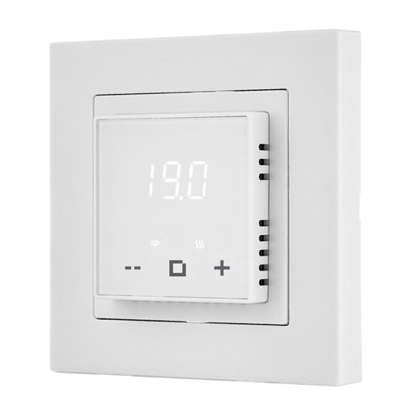 Встраиваемый белый регулятор температуры электрических теплых полов с сенсорным управлением , выносным датчиком температуры и WIFI модулем, Warmfloor ET44W. t0044w10