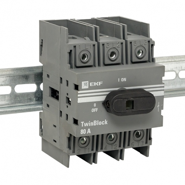 • Рубильник EKF PROxima TwinBlock 80A 3P c рукояткой управления для прямой установки (выключатель нагрузки)