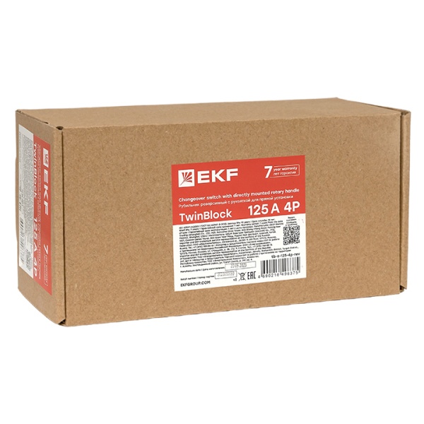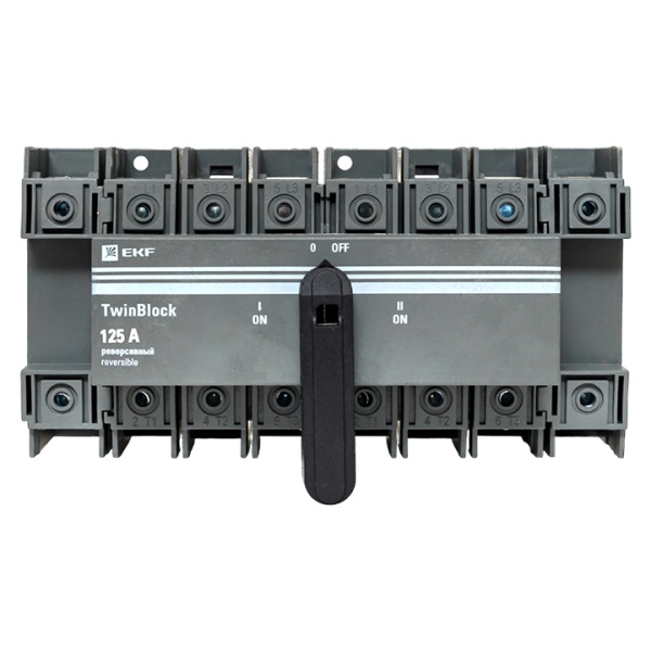 • Рубильник EKF PROxima TwinBlock 125A 4P реверсивный c рукояткой для прямой установки (выключатель нагрузки)
