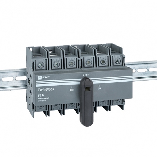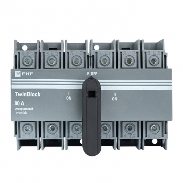Рубильник 3п 80А реверсивный с рукояткой управления для прямой установки TwinBlock EKF tb-s-80-3p-rev