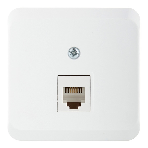 Розетка телефонная RJ 11, белая, наружная установка. серия продукта: Этюд - тип устройства или его аксессуаров: телефонная розетка - комплектация изделия: механизм в сборе - тип покрытия: глянцевая - монтаж: винтами, лапками - тип разъема: RJ11. Преимущества: Удачное решение для города и дачи, Доступная цена, Современный дизайн, Высокая степень надежности, Большой выбор функциональных возможностей и цветовых сочетаний, Простота и удобство монтажа, Соответствие ГОСТ Р и МЭК, Удобная упаковка.. применения: - Для загородного жилья, Для торговых центров, павильонов, зданий из сэндвич-панелей, где невозможно штробление стен, Прекрасная замена вышедших из строя электроустановочных изделий в многоквартирных домах, Для влажных помещений (IP44)..