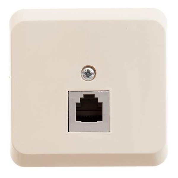 Розетка телефонная RJ 11, кремовая, наружная установка. серия продукта: Этюд - тип устройства или его аксессуаров: телефонная розетка - комплектация изделия: механизм в сборе - тип покрытия: декорировано пленкой - монтаж: винтами, лапками - тип разъема: RJ11. Преимущества: Удачное решение для города и дачи, Доступная цена, Современный дизайн, Высокая степень надежности, Большой выбор функциональных возможностей и цветовых сочетаний, Простота и удобство монтажа, Соответствие ГОСТ Р и МЭК, Удобная упаковка.. применения: - Для загородного жилья, Для торговых центров, павильонов, зданий из сэндвич-панелей, где невозможно штробление стен, Прекрасная замена вышедших из строя электроустановочных изделий в многоквартирных домах, Для влажных помещений (IP44)..
