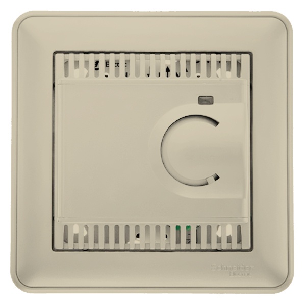 Известная и проверенная компания-производитель SE представляет серии электроустановочных изделий W59, которая характеризуется классическим дизайном, четкими и ровными контурами. Она включает в себя электронный термостат для теплого пола со встроенным датчиком и рамкой в комплекте, который предназначен для размещения внутри бытовых помещений. Его задача состоит в том, чтобы обеспечить регулировку температуры нагревательных кабелей, вмонтированных в пол, и поддерживать заданную температуру. Устройство работает в сети с номинальным напряжением 230 Вольт и силой тока до 10 Ампер. Оно полностью укомплектовано и готово к установке и работе. Термостат имеет электронный тип управления и обеспечивает защиту от перенапряжения. Лицевая панель устройства и рамка выполнены в красивом цвете шампань, которое обладает золотистым сиянием. Оно изготовлено из качественного пластика, устойчивого к загрязнению и воздействию УФ-излучения. Диапазон настройки температуры варьируется в пределах от +5 до +50 градусов Цельсия. Точность измерений до 1 градуса. Размеры изделия составляют: 85х85х55 мм. Степень защиты корпуса – IP20. Устройство имеет скрытый тип монтажа. Его следует устанавливать в монтажную коробку с фиксацией винтами. Выбор такого механизма подчеркнет отличный вкус владельца и эффектно украсить окружающее пространство.