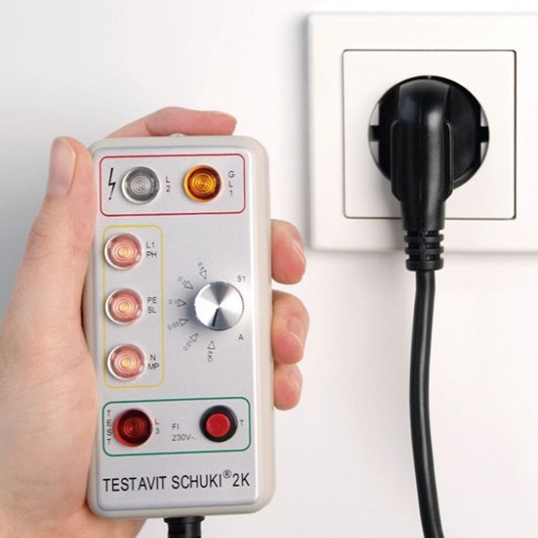 С помощью тестера Testavit Schuki 2K можно проверить все розетки в электросети 230 В на правильность подключений проводов и протестировать УЗО. Благодаря кабелю с вилкой Schuko все проверки можно легко выполнить также в труднодоступных местах.