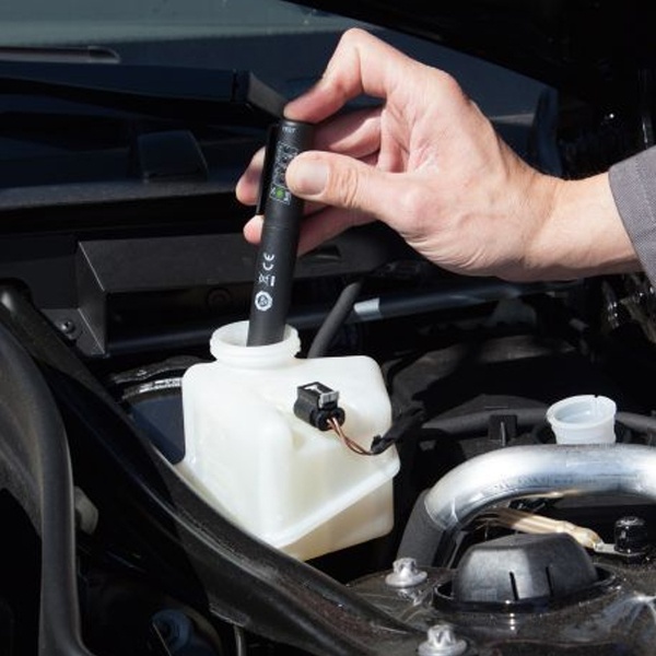 Testboy 50 — удобный тестер в форме ручки, с помощью которого можно моментально проверить качество тормозной жидкости DOT 4. Пять светодиодов точно показывают содержание воды в тормозной жидкости на основе гликоля. Поэтому прибор хорошо подходит для проведения ускоренной проверки жидкости на приемке автомобиля в автомастерской.