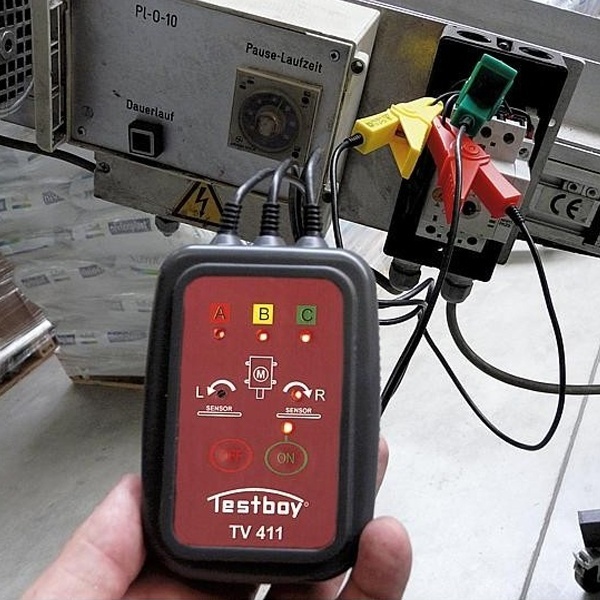 Бесконтактный тестер вращающегося поля и вращения TV 411 показывает последовательность фаз и направление вращающегося поля внешнего проводника и особенно подходит для задач сервисного обслуживания оборудования с двигателем и многофазных сетей. Бесконтактное измерение с помощью выделенных цветом изолированных клемм ускоряет сервисное обслуживание и сводит к минимуму опасность прикосновения к электрически активному проводнику. Кроме того, встроенный тестер вращения определяет путем бесконтактного измерения переменного магнитного поля направление вращения вала двигателя.