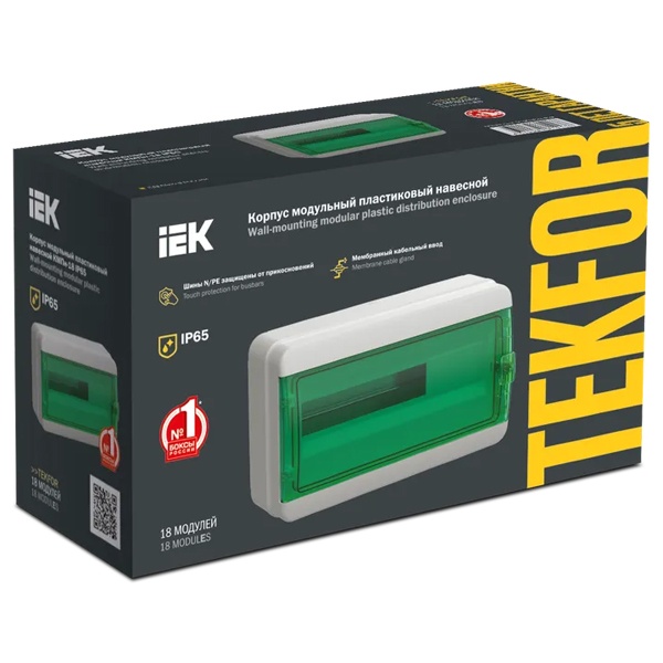 Пластиковый влагозащищенный электрощит на 18 модулей КМПн навесной установки с зеленой дверкой, Текфор ИЭК TF5-KP72-N-18-65-K03-K06
