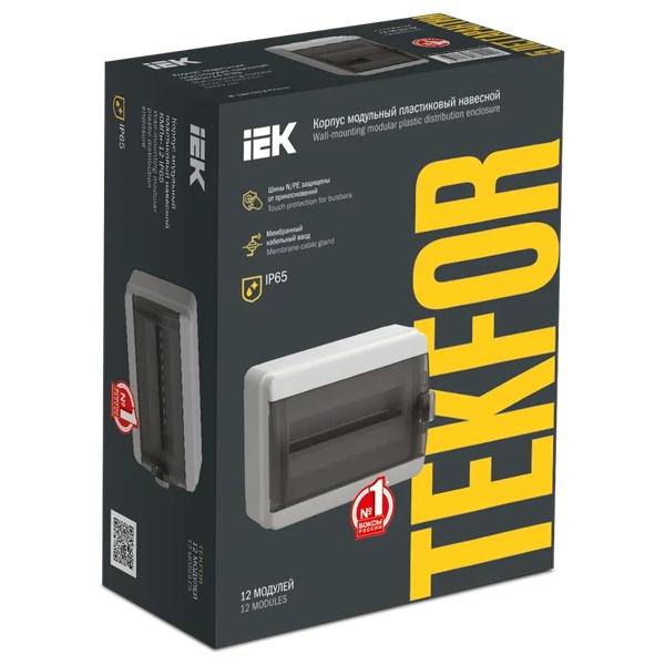 Пластиковый влагозащищенный электрощит на 24 модуля КМПн навесной установки с черной дверкой, Текфор ИЭК TF5-KP72-N-24-65-K03-K02