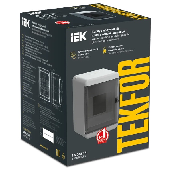 Пластиковый корпус КМПн навесной установки с черной дверцей на 4 модуля, Текфор ИЭК TFM-KP73-N-04-41-K01-K01