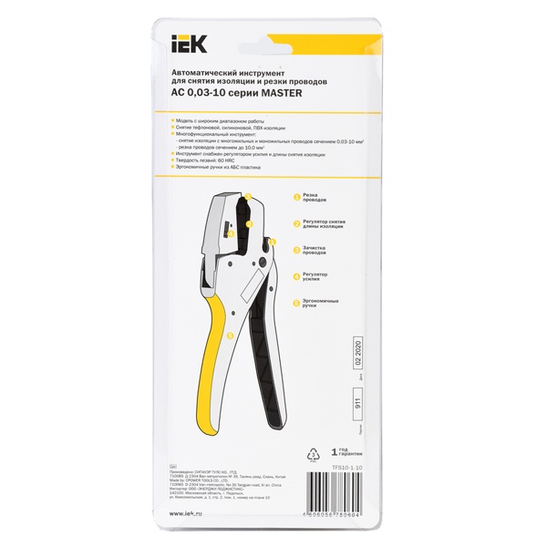 Универсальный ручной автоматический инструмент для снятия изоляции и резки проводов до 10мм2 TFS10-1-10