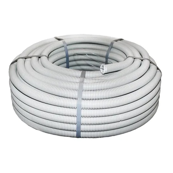 Гофрированные трубы из ПВХ представляют собой профессиональную кабеленесущую систему для скрытой прокладки силовых и слаботочных линий внутри различных типов зданий и помещений. Эти трубы особенно востребованы для монтажа электропроводки и прокладки кабелей в стенах, потолках и полах жилых, административных и промышленных объектов. Эластичность материала позволяет проводить монтаж с минимальными трудозатратами и временными затратами, независимо от сложности маршрута или особенностей помещения, а также практически без дополнительных аксессуаров. Гофрированные трубы изготавливаются из самозатухающей ПВХ-композиции, что предотвращает возгорание при коротком замыкании и препятствует распространению огня по трубе. Помимо этого, труба защищает кабели от механических повреждений и служит дополнительным изолятором.