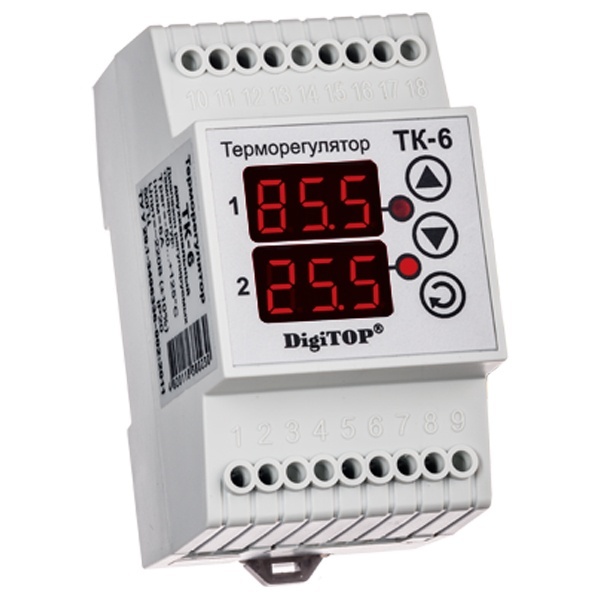 Модульный двухканальный регулятор температуры ТК-6 с цифровым индикатором 46-255