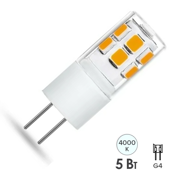 Капсульная светодиодная лампочка мощностью 5 Ватт с цоколем G4 нейтральный белый свет TKE-G4-5-4K