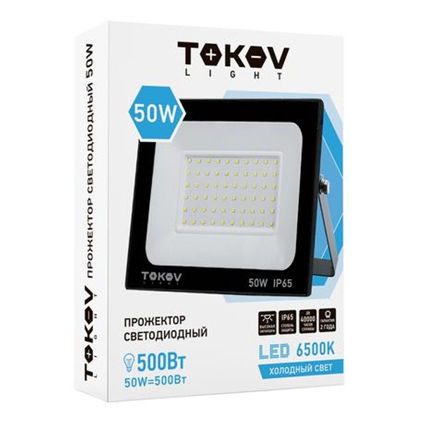 • Прожектор светодиодный Tokov Electric 50W 6500K 3400Lm IP65 черный (TKL)