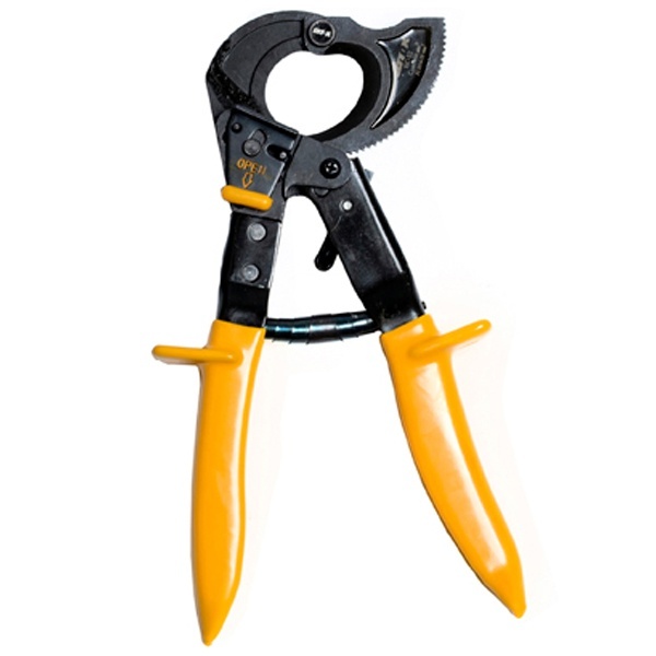 Инструмент для резки кабеля с пластмассовой и бумажной изоляцией изготавливается из инструментальной стали с высокой режущей способностью. Специальная геометрия лезвий позволят осуществлять работу безопасно и быстро. Обладает высокой стабильностью и незначительной массой. Ножницы секторные снабжены храповым механизмом, выдвижными ручками, блокиратором резки. Замок устроен таким образом, что позволяет осуществлять обратный ход лезвия, необходимый в случае попадания в нож посторонних объектов. Чрезвычайно высокая режущая способность инструмента достигается за счёт оптимальной конструкции ножниц и режущих ножей специальной геометрии.