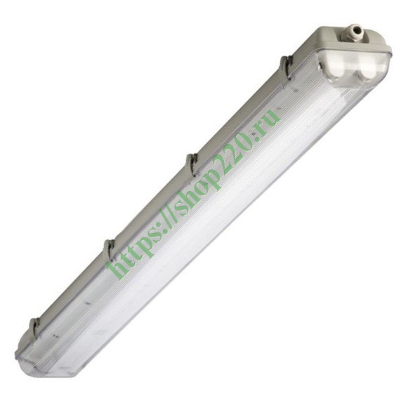Пылевлагозащищенный поликарбонатовый светильник фирмы Технолюкс с ПРА на две лампы мощностью 58 Ватт со степенью защиты IP65. 01150