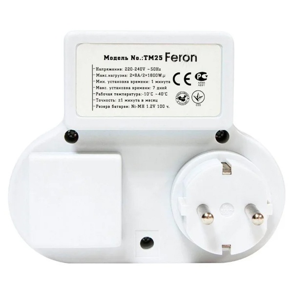 Розетка (недельная электронная), FERON TM25, IP20, 230V, 3500W/16А цвет белый, 100*120*77мм