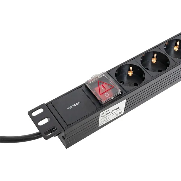 Блок розеток TERACOM 19" 1U предназначен для использования в серверных стойках. Он имеет 6 розеток стандарта Schuko (тип F), рассчитанных на напряжение 250 В и ток 16 А. Устройство выполнено в формате 1U, что позволяет компактно размещать его в стандартной 19-дюймовой стойке. Блок оборудован кабелем длиной 2 метра с вилкой Schuko и выключателем, что обеспечивает удобное подключение к электросети. Это решение идеально подходит для распределения питания в серверных, телекоммуникационных и других IT-инфраструктурах.