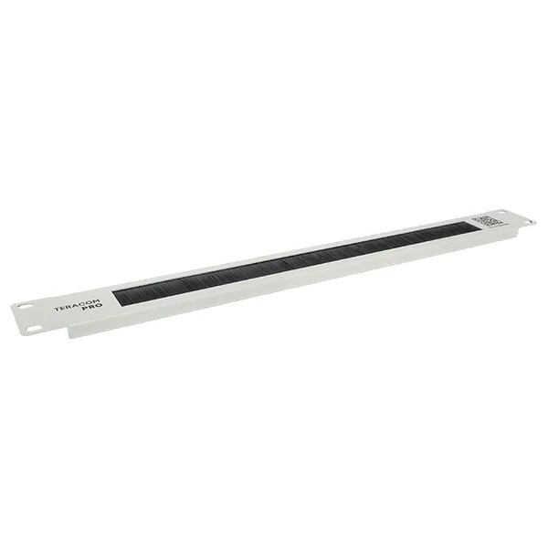 Щёточный ввод TERACOM PRO 1U представляет собой аксессуар для серверных стоек и телекоммуникационных шкафов. Он устанавливается в 19-дюймовые стойки и занимает пространство высотой в 1U (1 юнит). Основное назначение устройства — это организация аккуратного ввода и вывода кабелей из стойки, предотвращая их спутывание и защищая от повреждений. Щеточный ввод выполнен в виде металлической панели с густыми щетинами, через которые можно удобно пропускать кабели. Щетинки позволяют гибко управлять кабелями, удерживая их на месте, что способствует лучшему охлаждению оборудования внутри стойки и упрощает обслуживание. TERACOM PRO 1U часто используется в центрах обработки данных и на объектах, где важна организация кабельного менеджмента и порядок в телекоммуникационных шкафах.