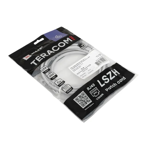 • Патч-корд EKF TERACOM PRO Cat.6 неэкранированный UTP оболочка LSZH серый (3,0м)