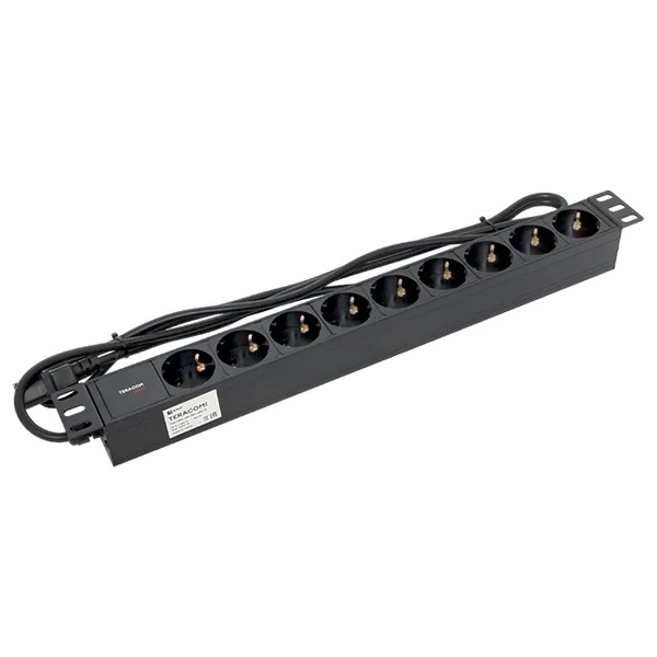 Блок розеток EKF PDU TERACOM PRO 19" 1U 10А/250В с 9 розетками EKF Schuko – это надежное и современное решение для организации электропитания в серверных стойках и рабочих местах. Устройство выполнено в формате 19", что позволяет удобно монтировать его в электрические шкафы и стойки стандартного размера. Компактный 1U корпус обеспечивает оптимальное использование пространства. Блок рассчитан на напряжение 250 В и максимальный ток 10 А, что подходит для большинства офисного и промышленного оборудования.