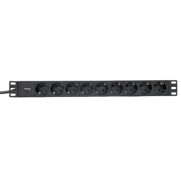 Блок розеток TERACOM 19" 1U предназначен для использования в серверных стойках. Он имеет 9 розеток стандарта Schuko (тип F), рассчитанных на напряжение 250 В и ток 16 А. Устройство выполнено в формате 1U, что позволяет компактно размещать его в стандартной 19-дюймовой стойке. Блок оборудован кабелем длиной 2 метра с вилкой Schuko, что обеспечивает удобное подключение к электросети. Это решение идеально подходит для распределения питания в серверных, телекоммуникационных и других IT-инфраструктурах.