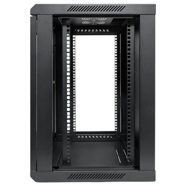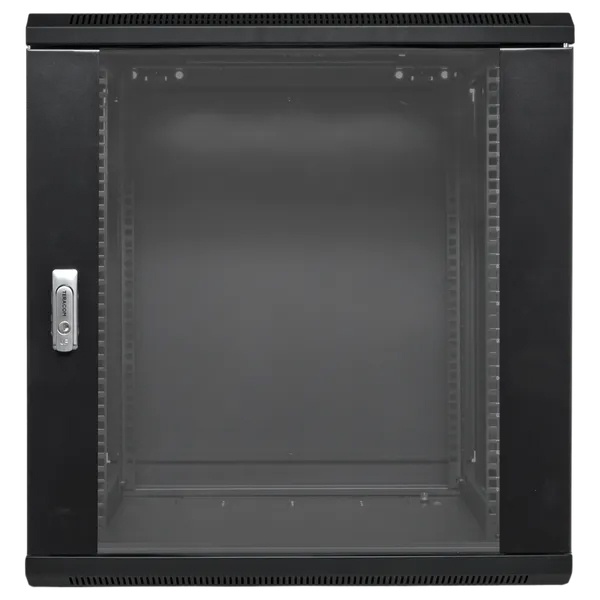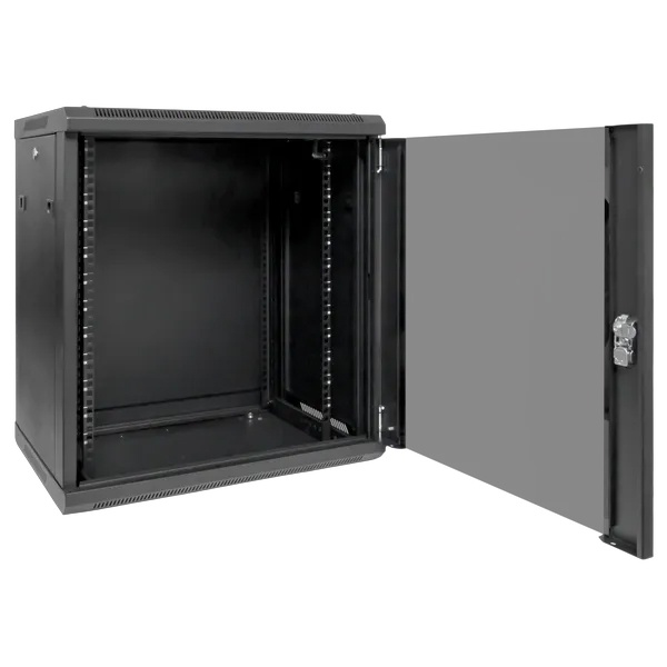Шкаф настенный телекоммуникационный представляет собой металлический корпус, предназначенный для размещения и защиты сетевого оборудования, таких как маршрутизаторы, свитчи, серверы и патч-панели. Обычно шкаф выполнен из прочной стали с порошковым покрытием, что обеспечивает его долговечность и защиту от коррозии. На передней панели имеется дверца с замком, зачастую с прозрачным стеклом для визуального контроля оборудования. Внутри шкафа предусмотрены регулируемые направляющие, которые позволяют устанавливать устройства в стандартных 19-дюймовых стойках. Также могут быть вентиляционные отверстия или активные вентиляторы для поддержания оптимальной температуры внутри. Шкаф крепится к стене, что экономит пространство и облегчает доступ к оборудованию.