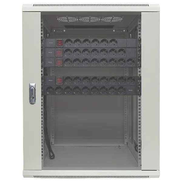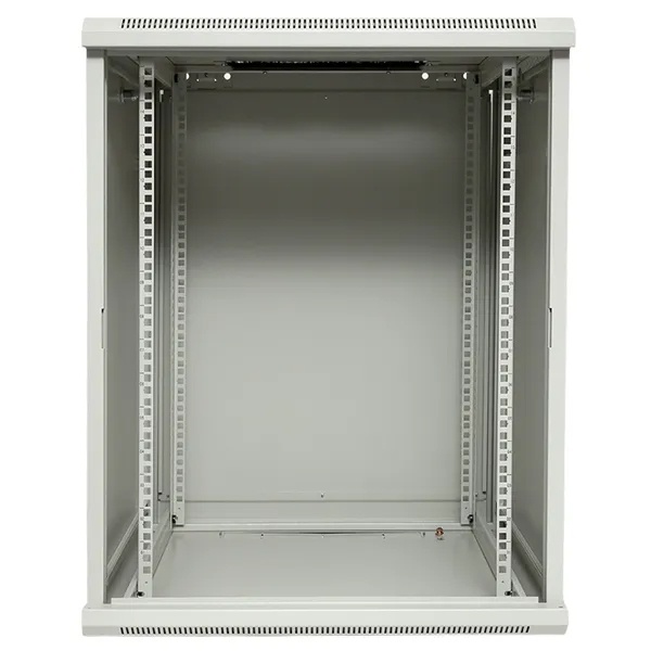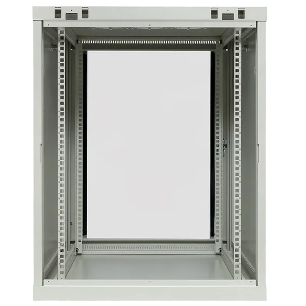 Шкаф настенный телекоммуникационный представляет собой металлический корпус, предназначенный для размещения и защиты сетевого оборудования, таких как маршрутизаторы, свитчи, серверы и патч-панели. Обычно шкаф выполнен из прочной стали с порошковым покрытием, что обеспечивает его долговечность и защиту от коррозии. На передней панели имеется дверца с замком, зачастую с прозрачным стеклом для визуального контроля оборудования. Внутри шкафа предусмотрены регулируемые направляющие, которые позволяют устанавливать устройства в стандартных 19-дюймовых стойках. Также могут быть вентиляционные отверстия или активные вентиляторы для поддержания оптимальной температуры внутри. Шкаф крепится к стене, что экономит пространство и облегчает доступ к оборудованию.