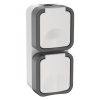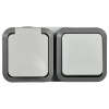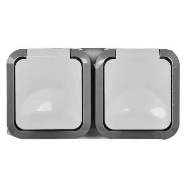 Двухместная горизонтальная влагозащищенная электрическая розетка с защитными шторками и крышкой для открытой установки, серо-белого цвета, Торс IEK TS-R26-16-55-G-K41