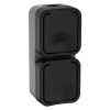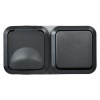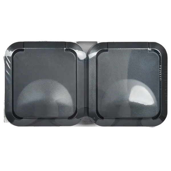Двухместная горизонтальная влагозащищенная электрическая розетка с защитными шторками и крышкой для открытой установки, цвет графит, Торс IEK TS-R26-16-55-G-K53