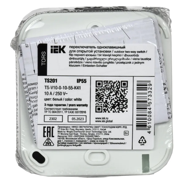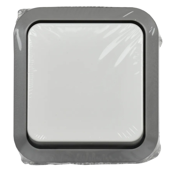 Проходной выключатель одноклавишный влагозащищенный для открытой установки, серо-белого цвета Торс IEK TS-V10-0-10-55-K41
