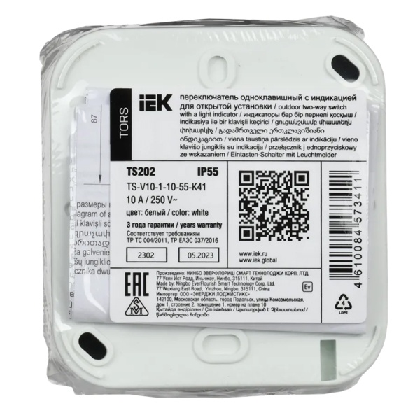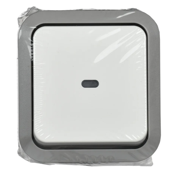 Проходной выключатель одноклавишный влагозащищенный с подсветкой для открытой установки, белый цвет, Торс IEK TS-V10-1-10-55-K41