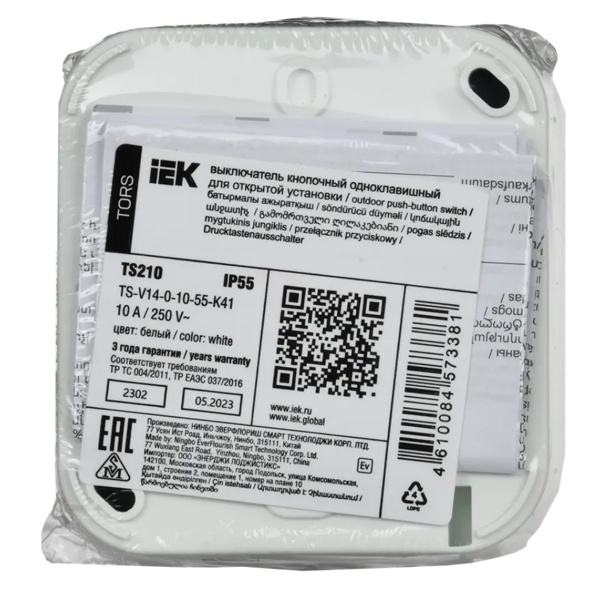 Одноклавишный влагозащищенный кнопочный выключатель для открытой установки, серо-белого цвета, Торс IEK TS-V14-0-10-55-K41