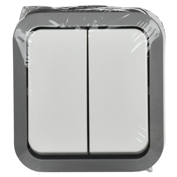 Двухклавишный влагозащищенный выключатель для открытой установки, белый цвет, Торс IEK TS-V20-0-10-55-K41