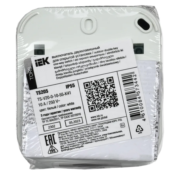 Выключатель 2-кл. ОП TORS 10А IP55 TS205 бел. IEK TS-V20-0-10-55-K41