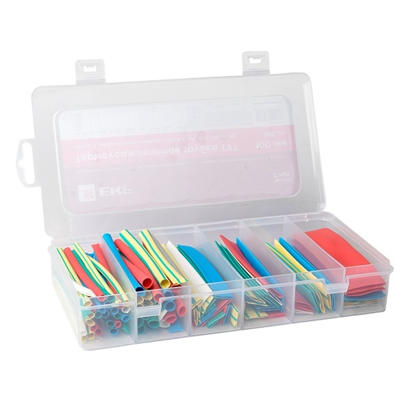 • Набор термоусаживаемых трубок EKF (бокс 5 цветов) (4/2; 6/3; 8/4; 10/5; 12/6; 20/10) 105шт.