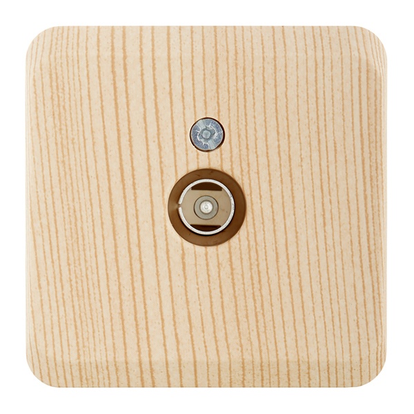 Розетка Schneider Electric ЭТЮД (сосна, открытой установки) телевизионная применяется для подключения телевизионного кабеля к сети. Данное изделие подходит для любых помещений. Розетка проста в установке, надежна и прочна в применении. Изделия цвета Сосна обладают уникальным рисунком, напоминающим древесный сруб. Сделано в России.