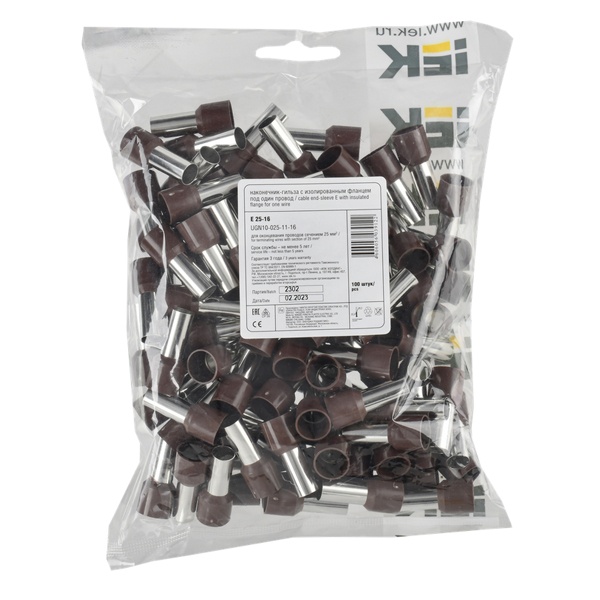Наконечник-гильза медный луженый коричнево-зеленый Е25-16 для проводов 25,0 мм2 (НШВИ) 100шт IEK UGN10-025-11-16