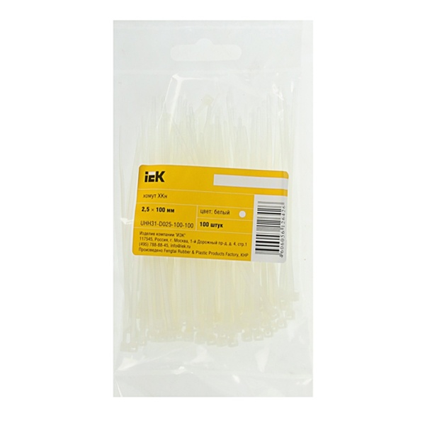Хомут кабельный 2.5х100 нейл. бел. (уп.100шт) IEK UHH31-D025-100-100