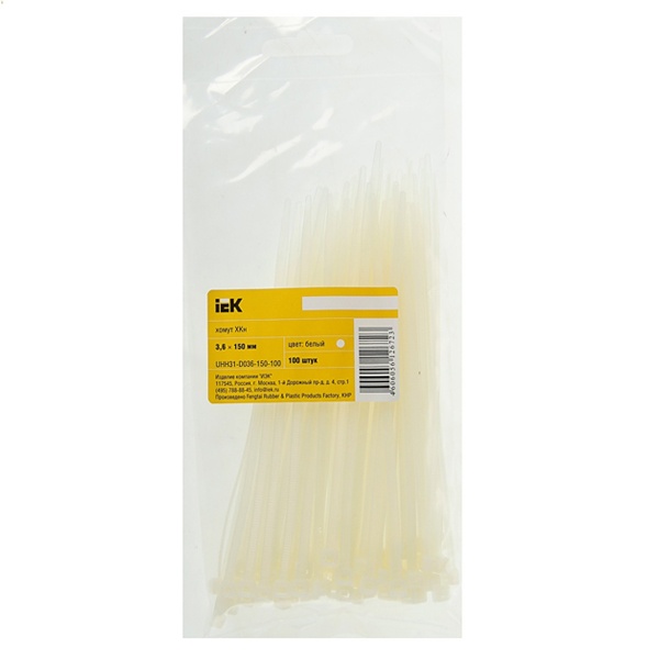 Хомуты кабельные нейлоновые (100шт.) 3,6x150мм белый IEK UHH31-D036-150-100