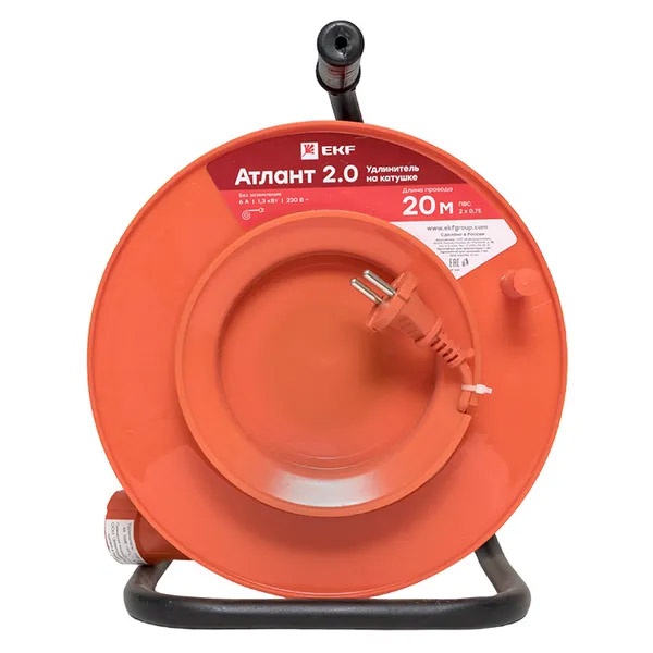 Электрический удлинитель на пластиковой катушке, с одной розеткой мощностью до 1,3 кВт, длина 20 метров, ЕКФ серии Атлант UKA02-06-275-1-20