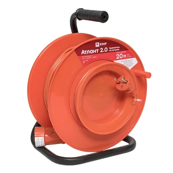Рама из металлической трубы с резиновой рукояткойУдаропрочный пластикГибкий надежный проводник ПВС.Литая неразборная вилкаУсиленная шпуля катушкиХарактеристики:- Длина: 20 м