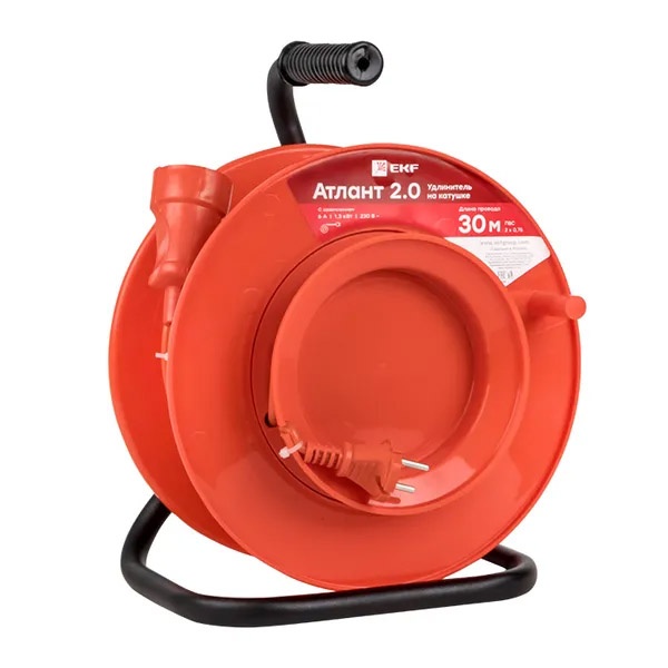 Рама из металлической трубы с резиновой рукояткойУдаропрочный пластикГибкий надежный проводник ПВС.Литая неразборная вилкаУсиленная шпуля катушкиХарактеристики:- Длина: 30 м