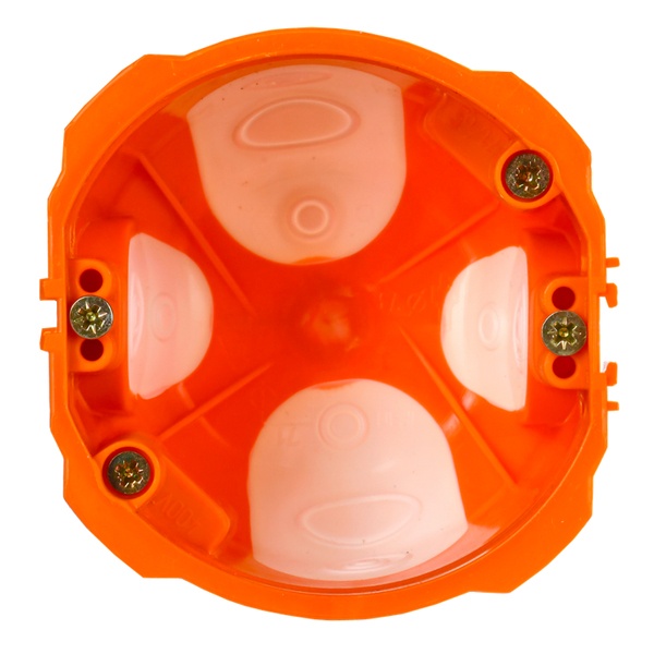 Монтаж коробки осуществляется быстро и удобно благодаря системе распорных лапок с винтовой фиксацией. Надёжное крепление обеспечивается без необходимости применения дополнительных инструментов. Это существенно упрощает установку и экономит время при выполнении электромонтажных работ.