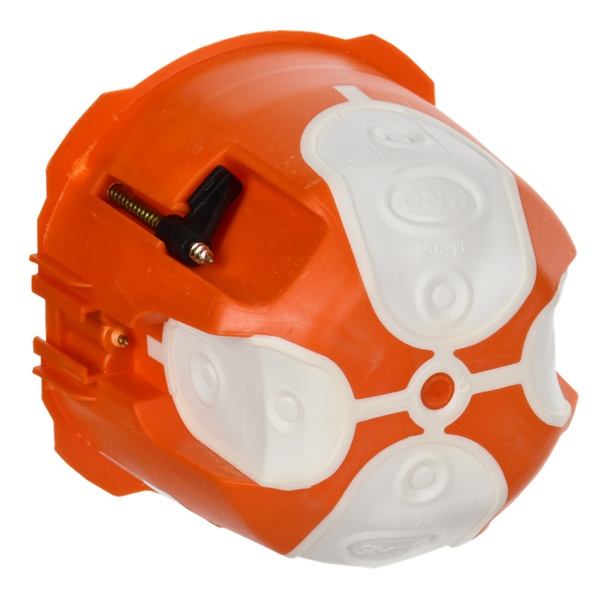 Удобная система монтажа с распорными лапками и винтовой фиксацией позволяет быстро и надёжно закрепить коробку в стене без необходимости применения дополнительных инструментов.