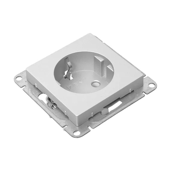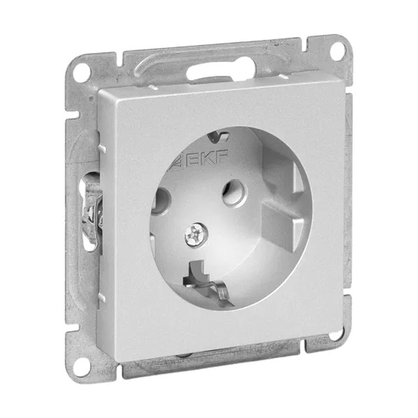 Электрическая розетка с заземляющим контактом скрытой установки алюминиевого цвета, винтовое подключение ЕКФ Эпика UP1-SOA-110
