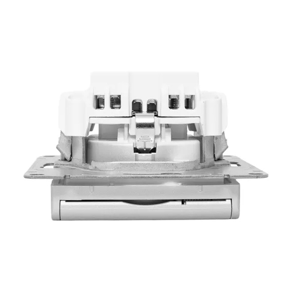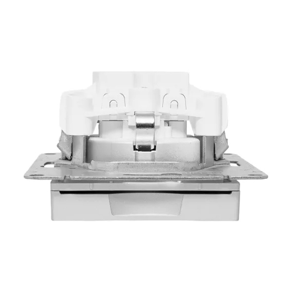 Универсальный механизм розетки совместим как с медной, так и с алюминиевой проводкой, обеспечивая надежное соединение и безопасную эксплуатацию.